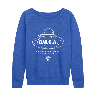 Women's Peanuts Blondes Get More Done Lightweight French Terry Wide Neck Long Sleeve Graphic Shirt - Heather Royal Blue - Medium