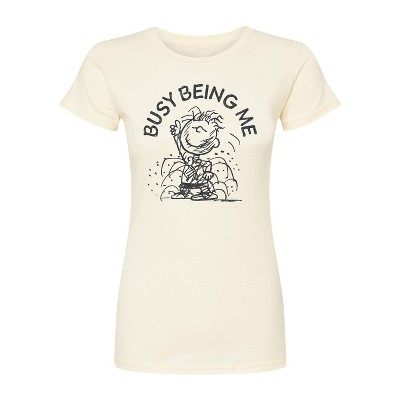 Peanuts - Busy Being Me Pigpen - Juniors Fitted Graphic T-Shirt - From the best-loved comic strip in history comes officially licensed PEANUTS apparel for fans everywhere. Show your love for Charlie Brown, Snoopy, Woodstock, Lucy, Linus, Pigpen and the whole gang. Copyright Peanuts.