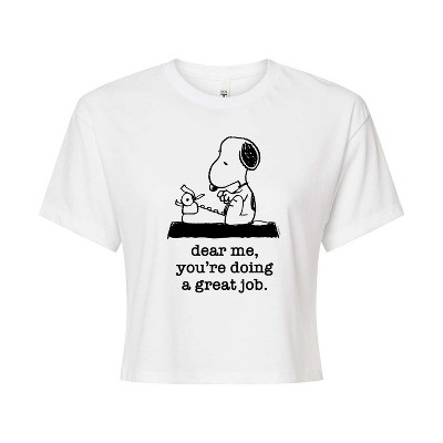 Women's Peanuts Busy Taking Care Of Me Cropped Graphic T-Shirt - White - Large