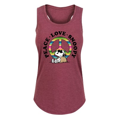 Peanuts - Camper Snoopy - Women's Racerback Tank Top - From the best-loved comic strip in history comes officially licensed PEANUTS apparel for fans everywhere. Show your love for Charlie Brown, Snoopy, Woodstock, Lucy, Linus, Pigpen and the whole gang. Copyright Peanuts.