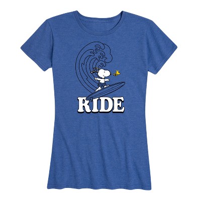 Peanuts - Camper Snoopy - Women's Short Sleeve Graphic T-Shirt - From the best-loved comic strip in history comes officially licensed PEANUTS apparel for fans everywhere. Show your love for Charlie Brown, Snoopy, Woodstock, Lucy, Linus, Pigpen and the whole gang. Copyright Peanuts.