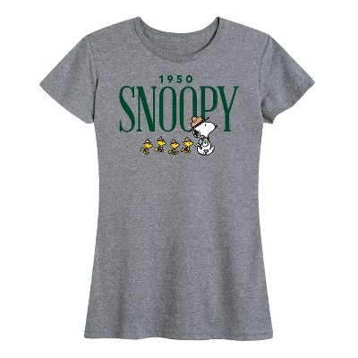 Peanuts - Camper Snoopy - Women's Short Sleeve Graphic T-Shirt - From the best-loved comic strip in history comes officially licensed PEANUTS apparel for fans everywhere. Show your love for Charlie Brown, Snoopy, Woodstock, Lucy, Linus, Pigpen and the whole gang. Copyright Peanuts.