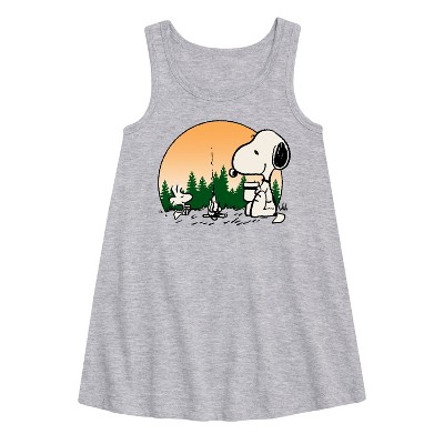 Women's Peanuts Campfire Mugs Graphic T-shirt Dress - Heather Blue - Small - 1 of 4
