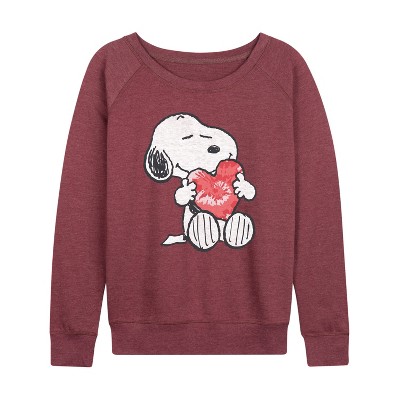 Women's - Peanuts - Charlie Snoopy Dancing Lightweight French Terry Wide Neck Long Sleeve Graphic Shirt