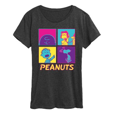 Women's Peanuts Christmas Stamps Short Sleeve Graphic T-Shirt - Heather Charcoal - Large