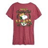 Women's Peanuts Country Club Snoopy and Woodsocks Short Sleeve Graphic T-Shirt - Heather Burgundy - 4X