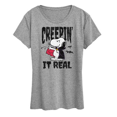 Peanuts - Creepin It Real - Women's Oversized T-Shirt - From the best-loved comic strip in history comes officially licensed PEANUTS apparel for fans everywhere. Show your love for Charlie Brown, Snoopy, Woodstock, Lucy, Linus, Pigpen and the whole gang. Copyright Peanuts.