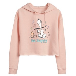 Women's - Peanuts - Be Happy Snoopy And Woodstock Cropped Graphic Hoodie - 1 of 4