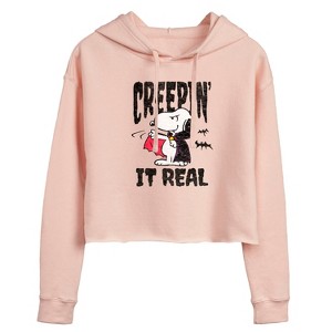 Women's - Peanuts - Creepin It Real Cropped Graphic Hoodie - 1 of 4