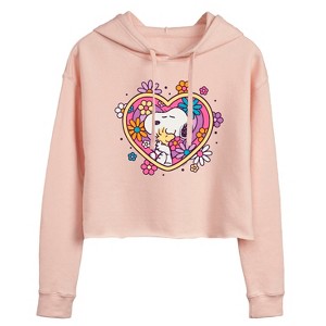Women's - Peanuts - Hug Heart Flower Cropped Graphic Hoodie - 1 of 4