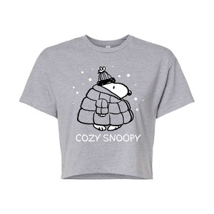 Women's - Peanuts - Cozy Snoopy Cropped Graphic T-Shirt - 1 of 4