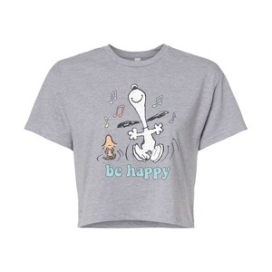 Women's - Peanuts - Be Happy Snoopy And Woodstock Cropped Graphic T-Shirt - 2 of 4Women's - Peanuts - Be Happy Snoopy And Woodstock Cropped Graphic T-Shirt - 3 of 4Women's - Peanuts - Be Happy Snoopy And Woodstock Cropped Graphic T-Shirt - 4 of 4