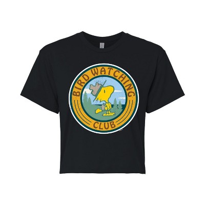 Women's Peanuts Fifty Years Mountain Top Cropped Graphic T-Shirt - Black - 2 X-Large