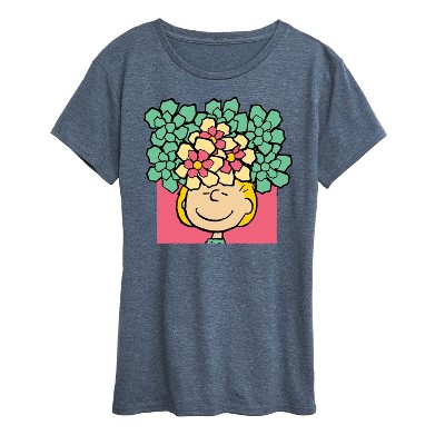 Women's Peanuts Floral Peace Sign Short Sleeve Graphic T-Shirt - Heather Blue - X-Large