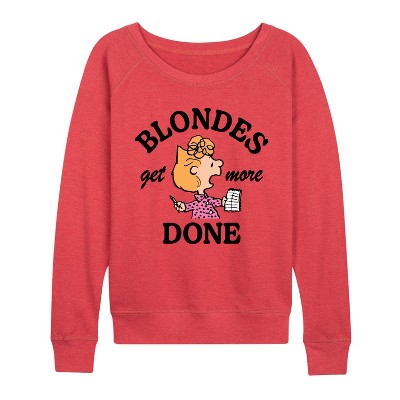 Women's Peanuts Franklin Baseball Lightweight French Terry Wide Neck Long Sleeve Graphic Shirt - Heather Red - Small