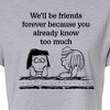 Peanuts - Friends Forever - Juniors Cropped Cotton Blend T-Shirt - From the best-loved comic strip in history comes officially licensed PEANUTS apparel for fans everywhere. Show your love for Charlie Brown, Snoopy, Woodstock, Lucy, Linus, Pigpen and the whole gang. Copyright Peanuts.