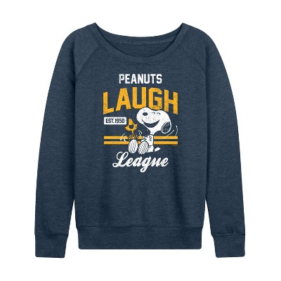 Women's - Peanuts - Good Grief Academy Lightweight French Terry Wide Neck Long Sleeve Graphic Shirt