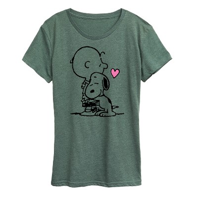 Women's Peanuts Good Ol Charlie Brown and Snoopy Short Sleeve Graphic T-Shirt - Heather Juniper - Small