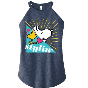 Peanuts - Snoopy Woodstock Stylin - Juniors High Neck Tank Top - From the best-loved comic strip in history comes officially licensed PEANUTS apparel for fans everywhere. Show your love for Charlie Brown, Snoopy, Woodstock, Lucy, Linus, Pigpen and the whole gang. Copyright Peanuts.