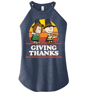 Peanuts - Giving Thanks - Juniors High Neck Tank Top - From the best-loved comic strip in history comes officially licensed PEANUTS apparel for fans everywhere. Show your love for Charlie Brown, Snoopy, Woodstock, Lucy, Linus, Pigpen and the whole gang. Copyright Peanuts.