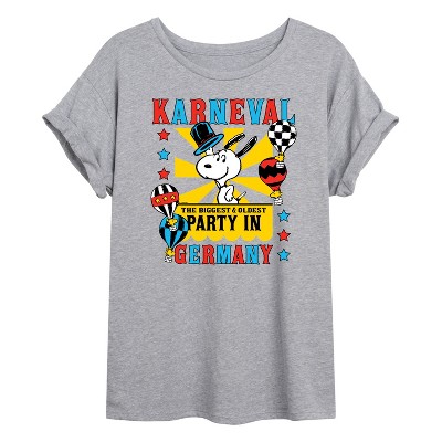 Peanuts - Karneval Biggest Oldest Party Germany - Women's Racerback Tank Top - From the best-loved comic strip in history comes officially licensed PEANUTS apparel for fans everywhere. Show your love for Charlie Brown, Snoopy, Woodstock, Lucy, Linus, Pigpen and the whole gang. Copyright Peanuts.