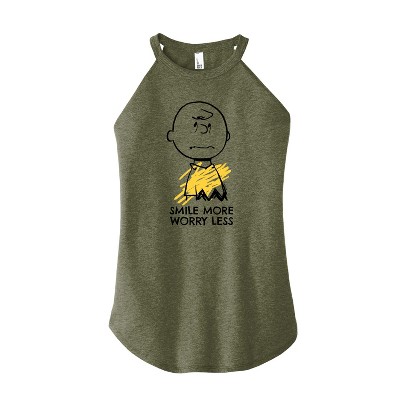 Women's - Peanuts - Smile More Worry Less Graphic Racerback Tank
