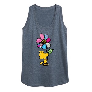Women's - Peanuts - Woodstock With Flower And Pattern Graphic Racerback Tank - 1 of 4