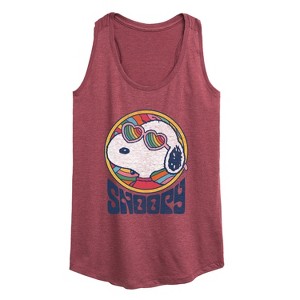 Peanuts - Groovy Snoopy - Women's Racerback Tank Top - From the best-loved comic strip in history comes officially licensed PEANUTS apparel for fans everywhere. Show your love for Charlie Brown, Snoopy, Woodstock, Lucy, Linus, Pigpen and the whole gang. Copyright Peanuts.