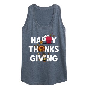 Peanuts - Happy Thanksgiving Icons - Women's Racerback Tank Top - From the best-loved comic strip in history comes officially licensed PEANUTS apparel for fans everywhere. Show your love for Charlie Brown, Snoopy, Woodstock, Lucy, Linus, Pigpen and the whole gang. Copyright Peanuts.