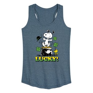 Peanuts - Lucky - Women's Racerback Tank Top - From the best-loved comic strip in history comes officially licensed PEANUTS apparel for fans everywhere. Show your love for Charlie Brown, Snoopy, Woodstock, Lucy, Linus, Pigpen and the whole gang. Copyright Peanuts.