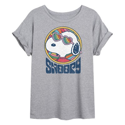 Peanuts - Groovy Snoopy - Women's Short Sleeve Graphic T-Shirt - From the best-loved comic strip in history comes officially licensed PEANUTS apparel for fans everywhere. Show your love for Charlie Brown, Snoopy, Woodstock, Lucy, Linus, Pigpen and the whole gang. Copyright Peanuts.