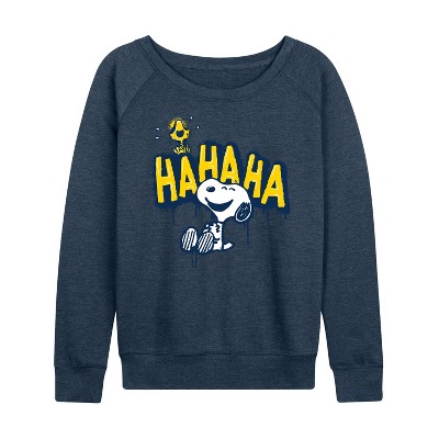 Women's - Peanuts - Ha Ha Graffiti Lightweight French Terry Wide Neck Long Sleeve Graphic Shirt