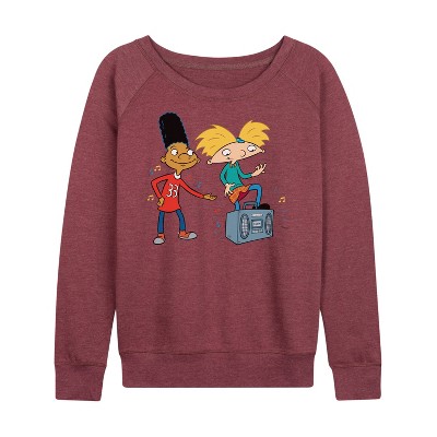Women's - Peanuts - Ha Ha Graffiti Lightweight French Terry Wide Neck Long Sleeve Graphic Shirt