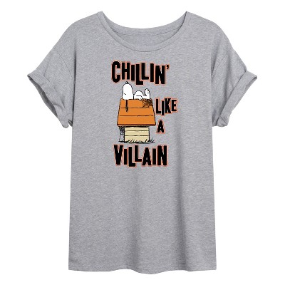 Peanuts - Halloween Chillin' Art - Juniors Cropped Cotton Blend T-Shirt - From the best-loved comic strip in history comes officially licensed PEANUTS apparel for fans everywhere. Show your love for Charlie Brown, Snoopy, Woodstock, Lucy, Linus, Pigpen and the whole gang. Copyright Peanuts.