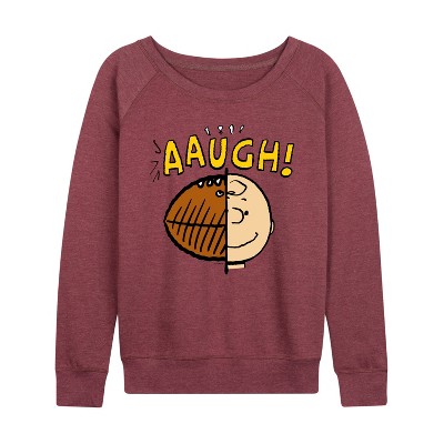 Women's Peanuts Halloween Homies Lightweight French Terry Wide Neck Long Sleeve Graphic Shirt - Heather Maroon - 2X