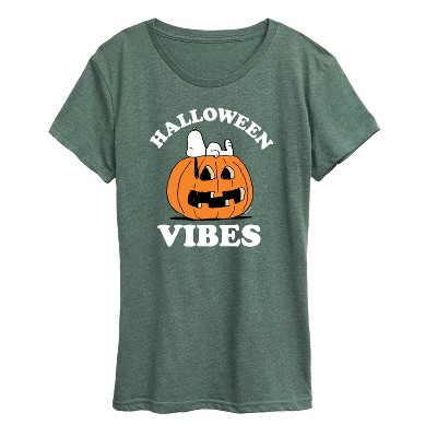Peanuts - Halloween Vibes - Women's Short Sleeve Graphic T-Shirt - From the best-loved comic strip in history comes officially licensed PEANUTS apparel for fans everywhere. Show your love for Charlie Brown, Snoopy, Woodstock, Lucy, Linus, Pigpen and the whole gang. Copyright Peanuts.