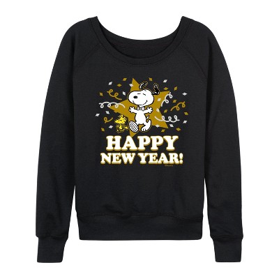 Peanuts - Happy New Year - Women's Short Sleeve Graphic T-Shirt - From the best-loved comic strip in history comes officially licensed PEANUTS apparel for fans everywhere. Show your love for Charlie Brown, Snoopy, Woodstock, Lucy, Linus, Pigpen and the whole gang. Copyright Peanuts.
