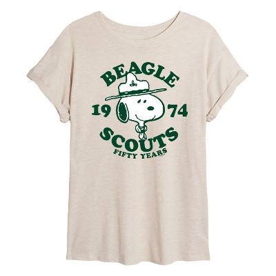 Women's Peanuts Howdy Charlie Brown-Womens Oversized Graphic T-Shirt Oversized Graphic T-Shirt - Birch - Small