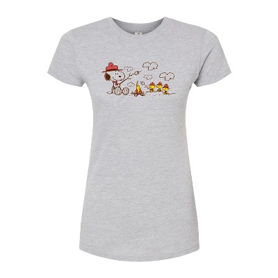 Women's Peanuts Howdy Partner Snoopy -Juniors Fitted Short Sleeve Graohic T-Shirt Fitted Graphic T-Shirt - Heather Grey - X-Large