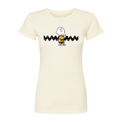 Women's Peanuts Howdy Partner Snoopy -Juniors Fitted Short Sleeve Graohic T-Shirt Fitted Graphic T-Shirt - Natural - Small