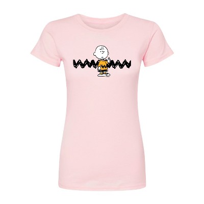 Women's Peanuts Howdy Partner Snoopy -Juniors Fitted Short Sleeve Graohic T-Shirt Fitted Graphic T-Shirt - Pink - Medium