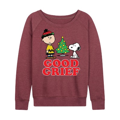 Women's Peanuts I Need A Girls Day Lightweight French Terry Wide Neck Long Sleeve Graphic Shirt - Heather Maroon - Small