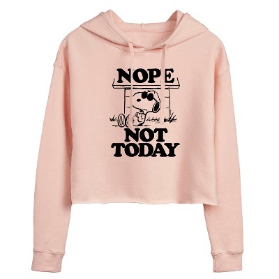 Women's - Peanuts - I Think I'll Stay In Bed Cropped Graphic Hoodie