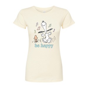 Women's - Peanuts - Be Happy Snoopy And Woodstock Fitted Graphic T-Shirt - 1 of 4