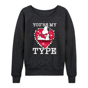 Women's - Peanuts - You're My Type Lightweight French Terry Wide Neck Long Sleeve Graphic Shirt