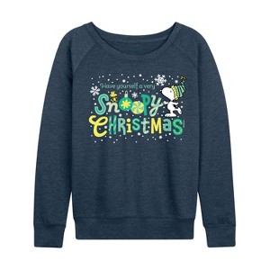 Women's - Peanuts - A Very Snoopy Christmas Lightweight French Terry Wide Neck Long Sleeve Graphic Shirt - 2 of 4Women's - Peanuts - A Very Snoopy Christmas Lightweight French Terry Wide Neck Long Sleeve Graphic Shirt - 3 of 4Women's - Peanuts - A Very Snoopy Christmas Lightweight French Terry Wide Neck Long Sleeve Graphic Shirt - 4 of 4