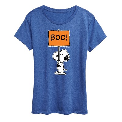 Women's Peanuts Many Faces Of Snoopy And Friends Short Sleeve Graphic T-Shirt - Heather Royal Blue - Medium
