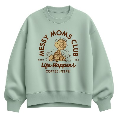 Women's Peanuts Messy Moms Club Oversized Fleece Hoodie Sweatshirt - Athletic Heather - Small
