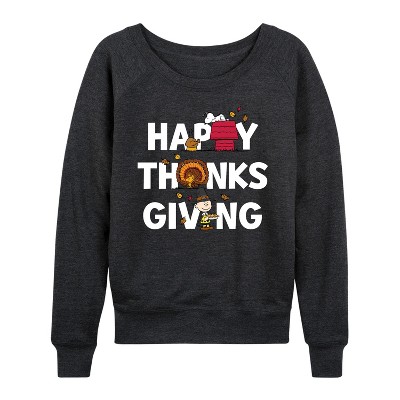 Women's Peanuts Orange Happy Halloween Lightweight French Terry Wide Neck Long Sleeve Graphic Shirt - Heather Charcoal - Large