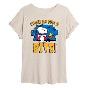 Women's - Peanuts - Snoopy Come In For A Bite Oversized Graphic T-Shirt - 1 of 4